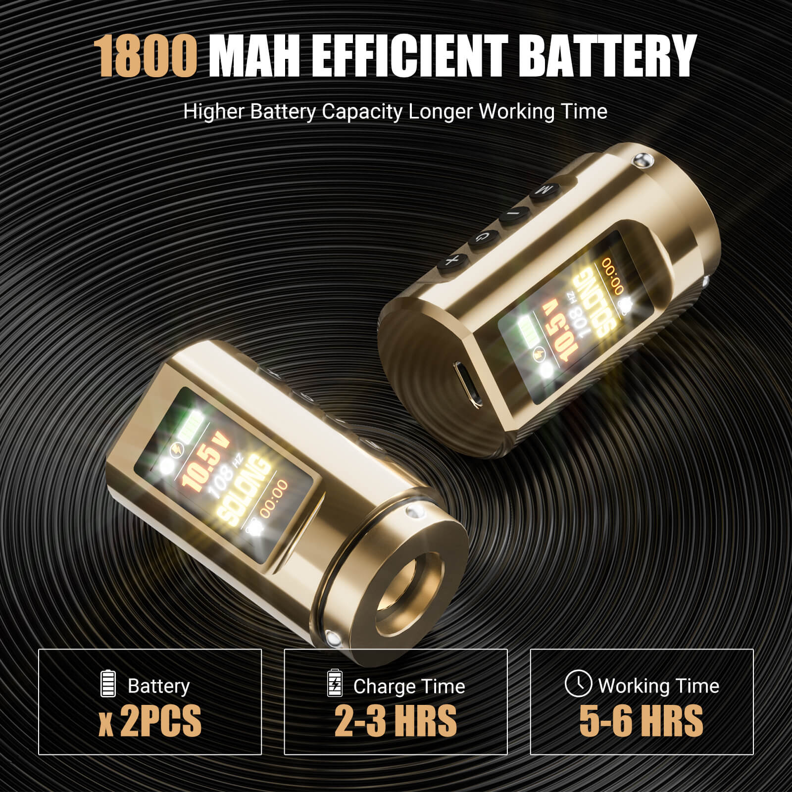 - 1800mAh Capacity Battery: E96 tattoo machine offering 5-6 hours of long operational work time after a quick 2-3 hours recharge.